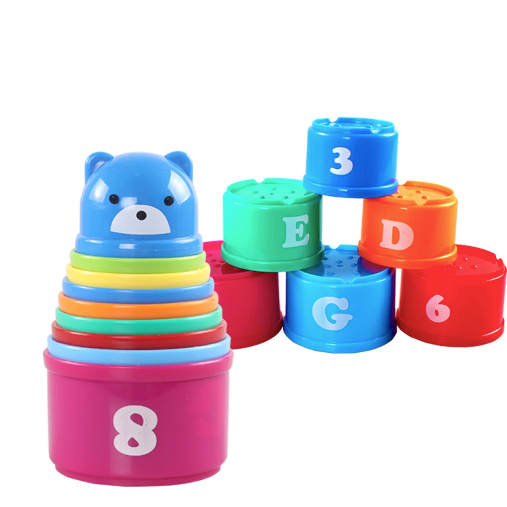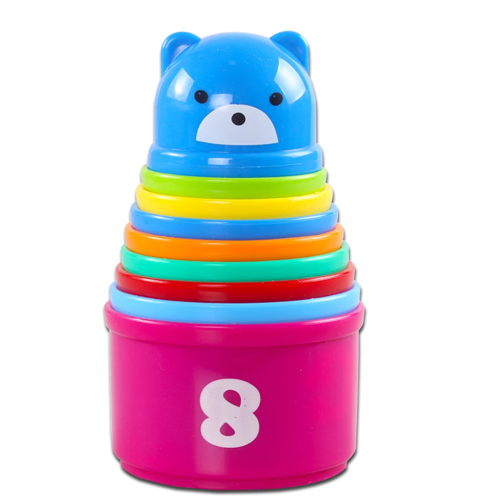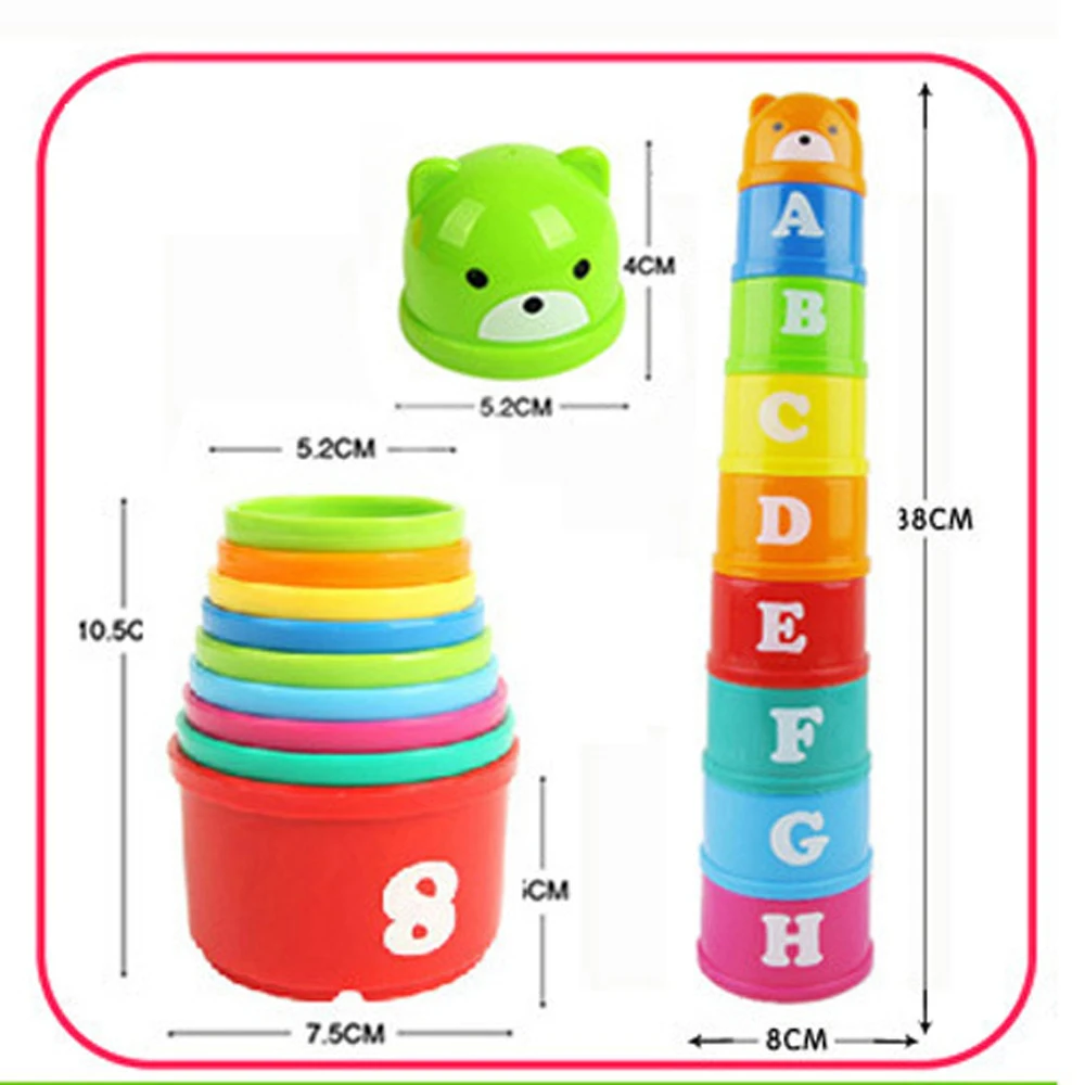 9PCS Bear Stack Cup Educational Baby Toys 13 24 months Rainbow color Kids Figures Folding Tower Funny Piles Cup Number Letter Toy